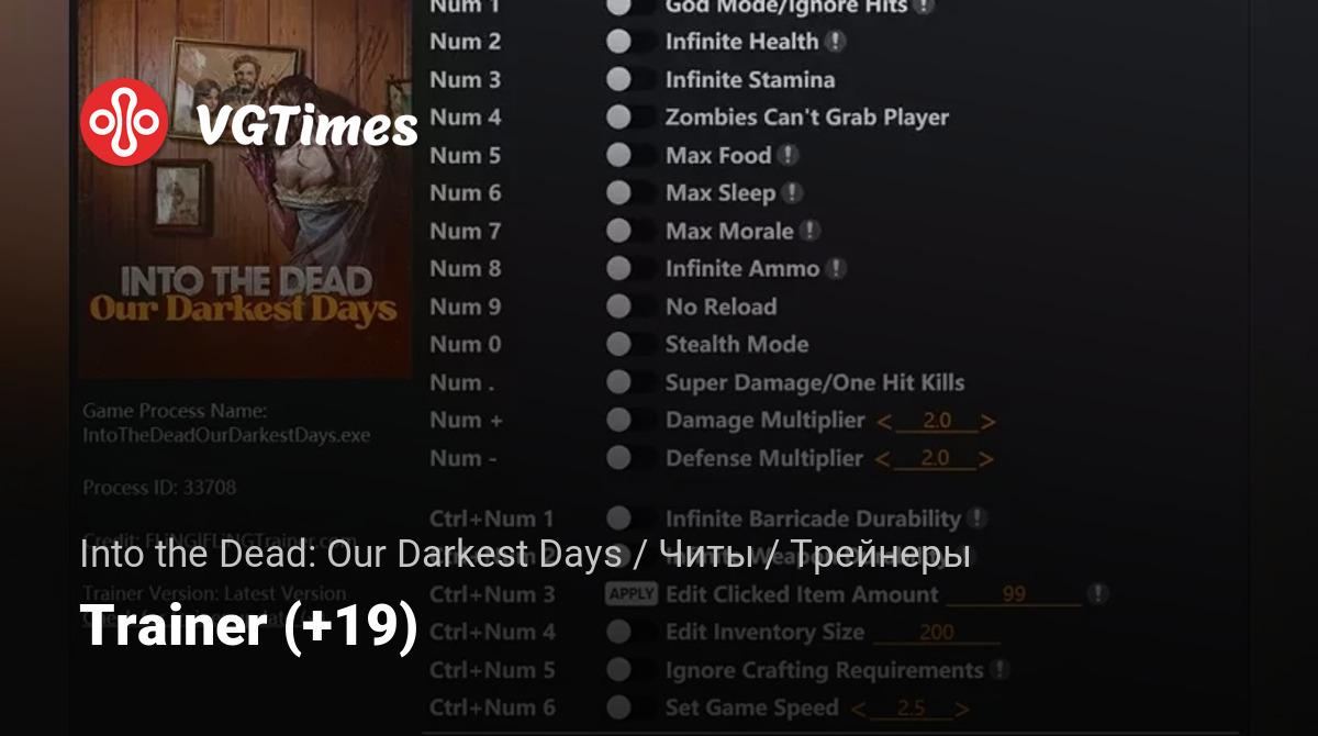 - Ctrl+Num 1 – Infinite Barricade Durability.