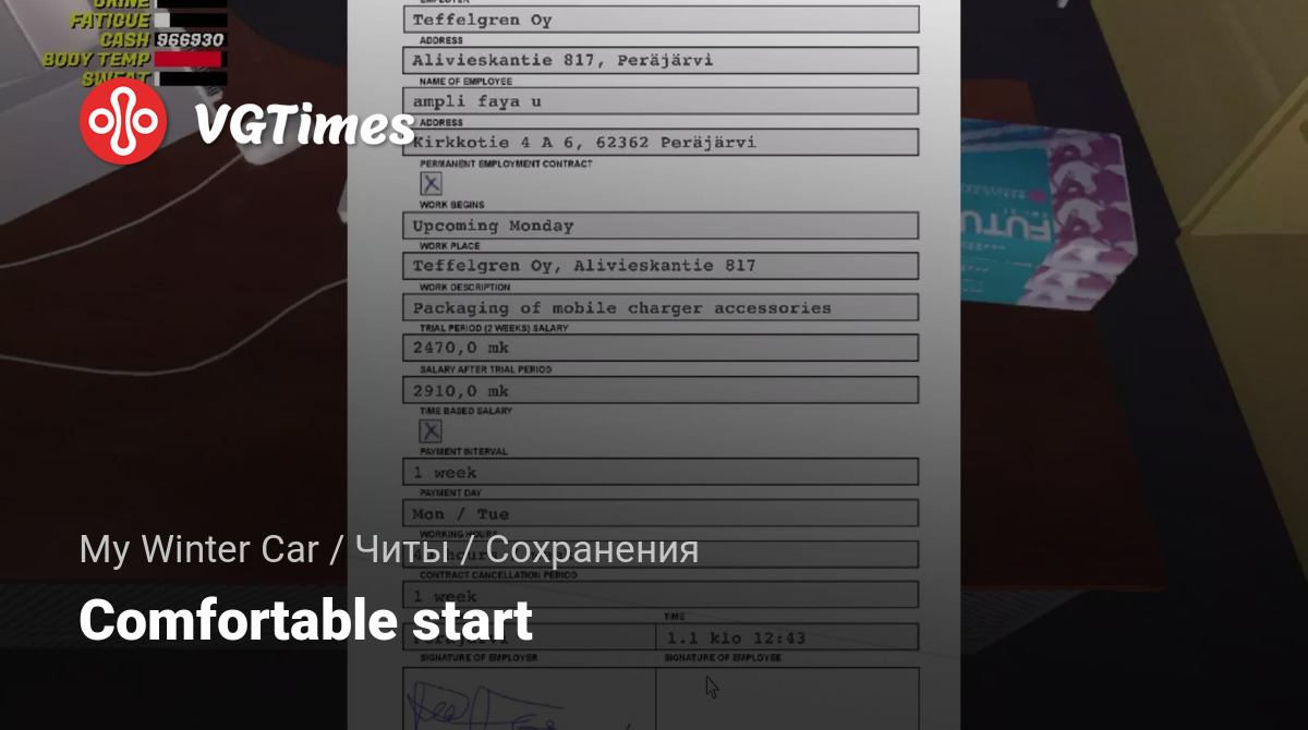 - The character already has a job at the factory—don't forget to start working there on Monday at 7 a.m.